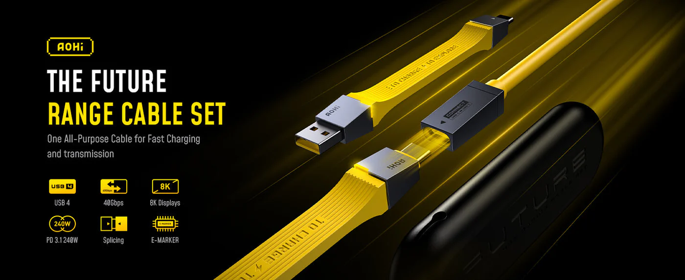 Bộ Cáp USB4 PD 3.1 4 Trong 1 Aohi The Future – Sạc Nhanh 240W & Truyền Dữ Liệu 40Gbps 8K