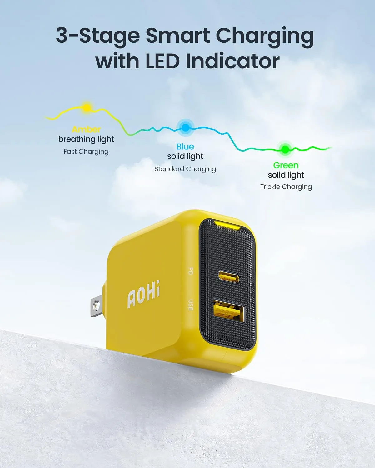 Một điểm nhấn khác của Bộ Sạc GaN Aohi Magcube 67W là đèn báo sạc 3 giai đoạn độc quyền AOHI, giúp bạn dễ dàng theo dõi trạng thái sạc chỉ trong nháy mắt. Công suất đầu ra cũng được điều chỉnh thông minh theo từng thiết bị, tối ưu hóa hiệu suất và bảo vệ pin.